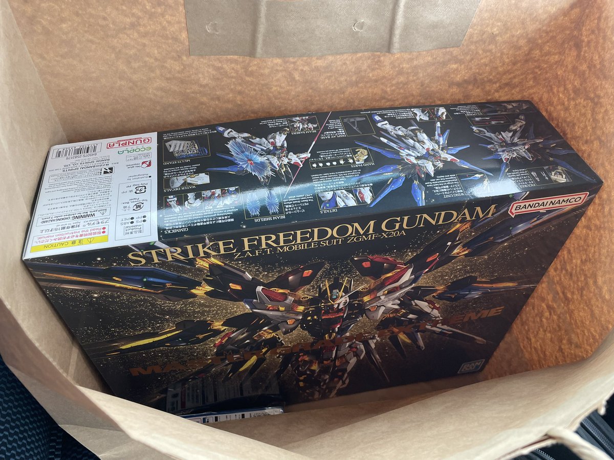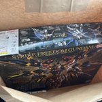 瞬間接着剤を買いに来たんですよ。 陳列棚の前で挙動不審な周囲確認をキメ散らかし、しばらくフリーズ、田舎の母に電話をしなければという強迫観念に襲われた後に正気に戻りレジに走りました(正気に戻っていない) 今夜はこいつを抱いて寝ます #ガンプラ #MGEXストライクフリーダムガンダム