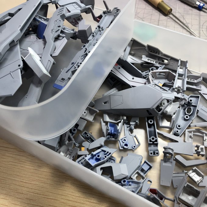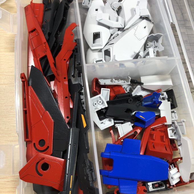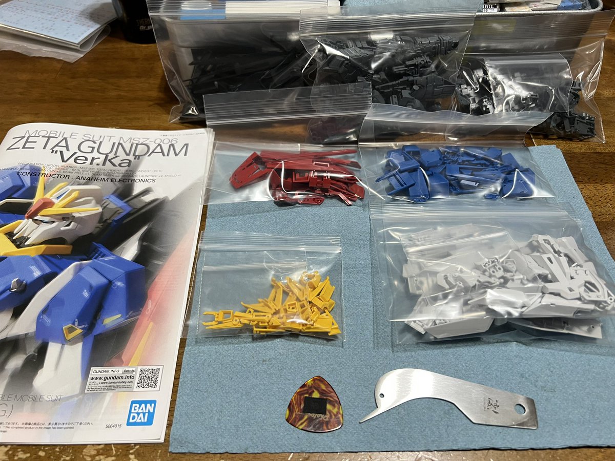 MGゼータガンダムver.KA 素組みを眺めてたら全塗装したくなってきた なのでバラして色毎にまとめた 予想より簡単にバラせて2時間かからなかった 変形での色ハゲが心配だけど何とかなるでしょw #ガンプラの画像を貼るとRTされると聞いて #ガンプラ好きと繋がりたい #MGzガンダム