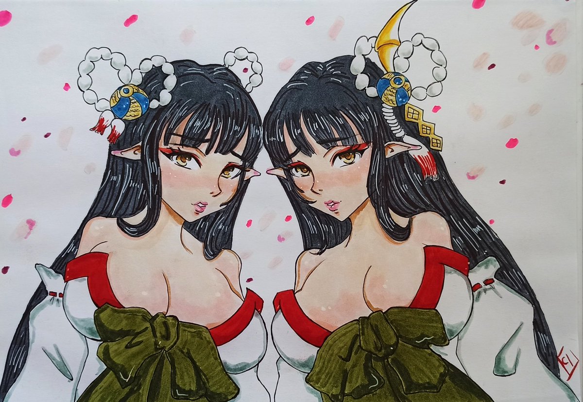 Mon interprétation des jumelles de #kamura dans #MHRISEハンター自己紹介 #fanart #minoto #hinoa #MonsterHunterRise