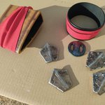 Avancées du set #arzuros Les petites sacoches sont finies. Objectif du jour faire le pan orange ainsi que le couteau. 🍉💗 #aoashira #MHRISEハンター自己紹介 #monsterhuntercosplay #MHRise #mhrisecosplay