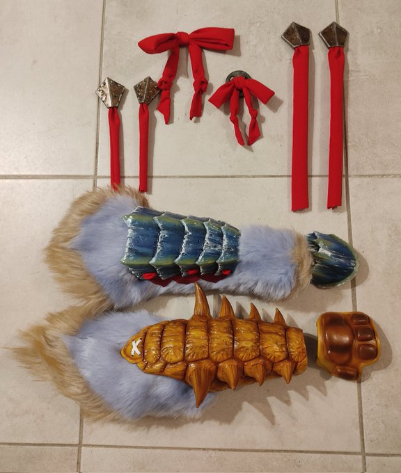 Petits noeuds, et pans en tissu du set #arzuros ainsi que les avant bras sont terminés. #aoashira #MHRISEハンター自己紹介 #monsterhuntercosplay #MHRise #mhrisecosplay
