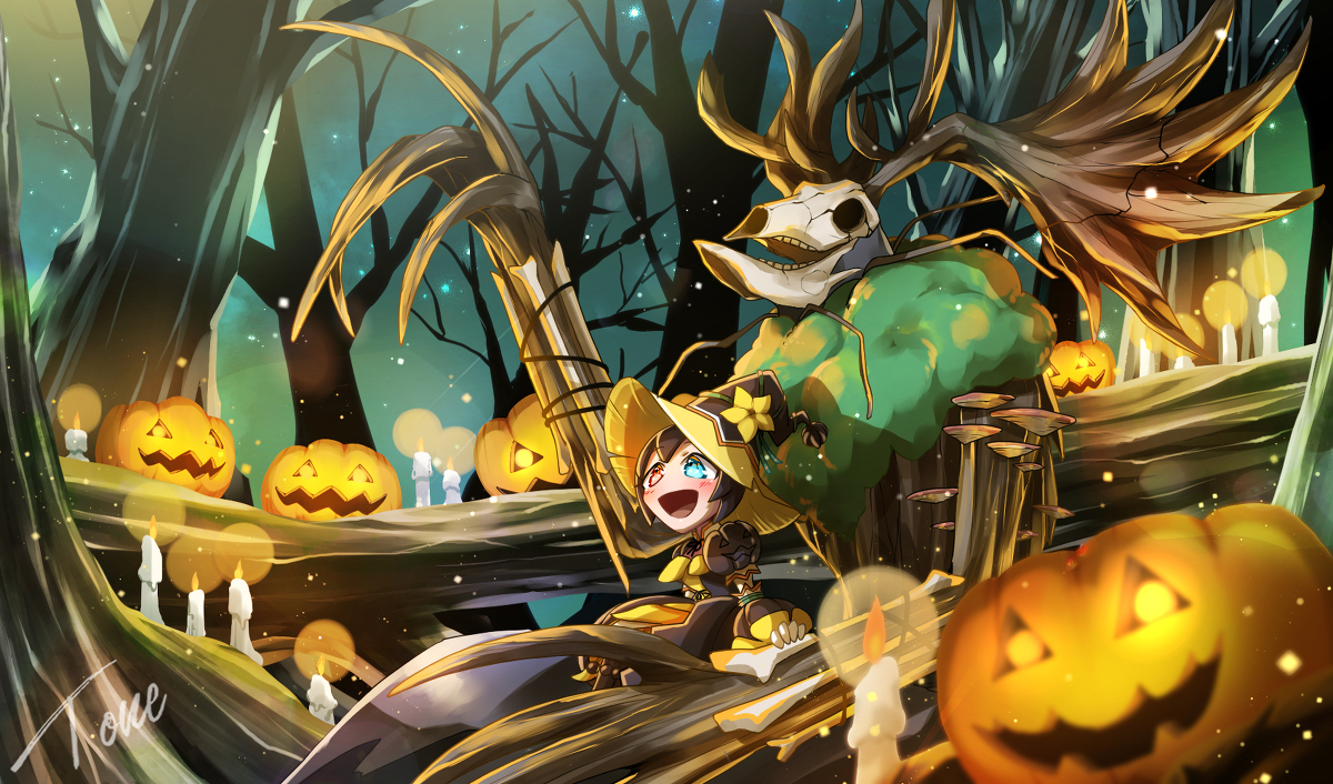 「精霊様、ずっとお話したかったよ! 今年も会いに来てくれてありがとう!」 ホラーナイトの夜にだけ 門をくぐってやってくるアナタ🎃 #モンハン #MHW #MHWアイスボーン #エンシェントレーシェン #モンスターとの日々