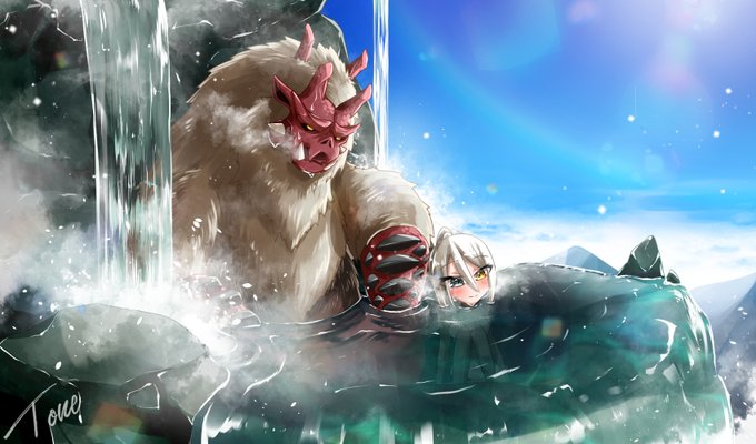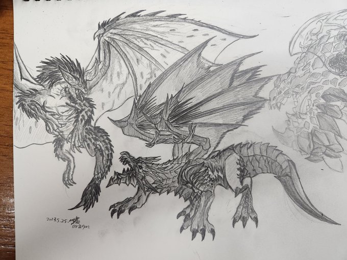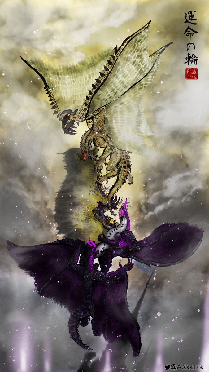 #白猫プロジェクト #白猫お絵描き #MonsterHunter #モンスターハンター #art #MHWIB 滅尽龍 ネルギガンテ VS 邪神竜 ファブニール/멸진룡 네르기간테 VS 사신룡 파브니르
