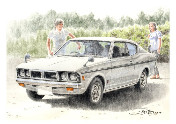 三菱ギャラン GTO PM-PAD+色鉛筆 この作品は縦に線を引くように塗ってます。 輪郭等はあまくなりますが縦線の効果で光が降り注ぐ様な爽やかな画面作りが可能です。 #イラスト #アナログ #色鉛筆 #illustration #drawing #colordpencil #mitsubishi