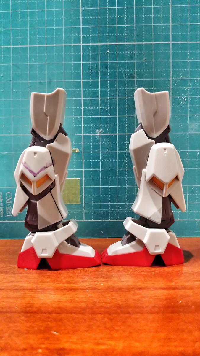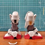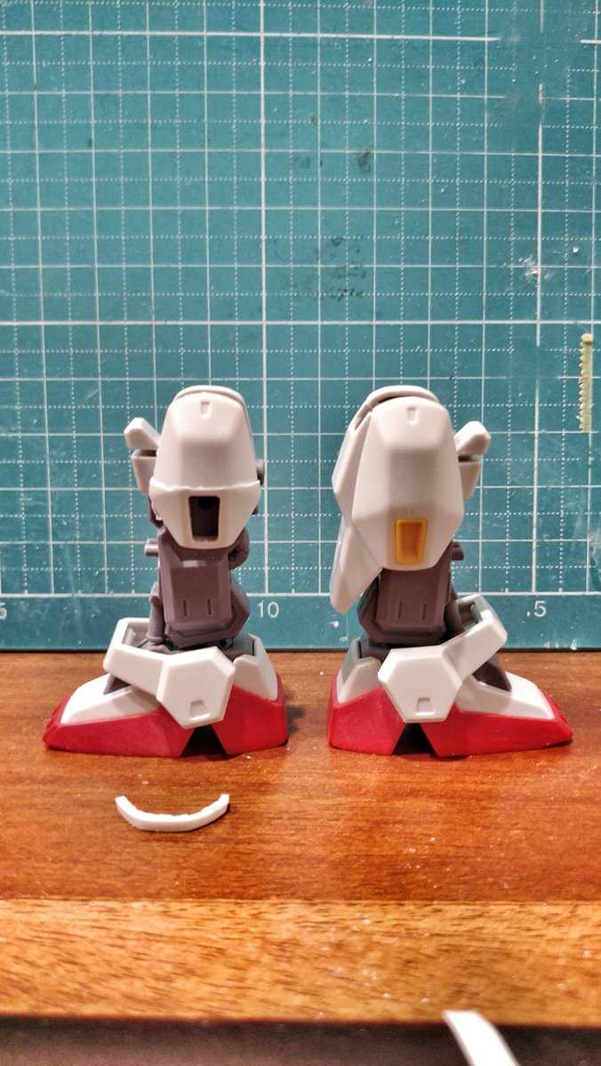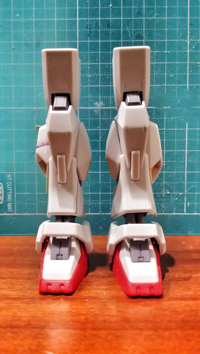 ふくらはぎ周りがゴツいので無難な位置で2㎜ほど小型化。正面で見るとあんま効果なさそうですが、もうちょいいじる予定。目指すは引き締まったアスリート体型なのです。外側のスラスターもやんないとね💪 このプラモ、全体的に下半身太ましいですよね? #ガンプラの画像貼るとRTされると聞いて #mk2