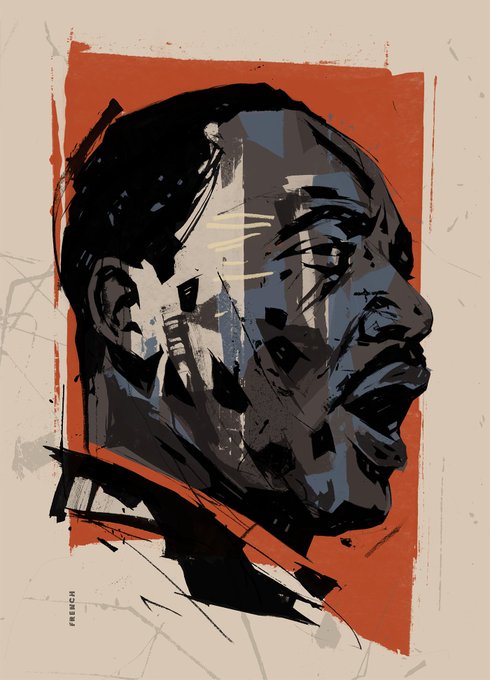 "MLK," a painting by #MartinFrench. Happy bday #MLK! (Jan. 15, 1929) Martin is represented by @IllustrationZo1. View Martin's stunning artworks: buff.ly/3XdhD0T #MartinLutherKing #painting #portrait #portraitart #civilrights #illustration #acrylicpainting #mixedmedia