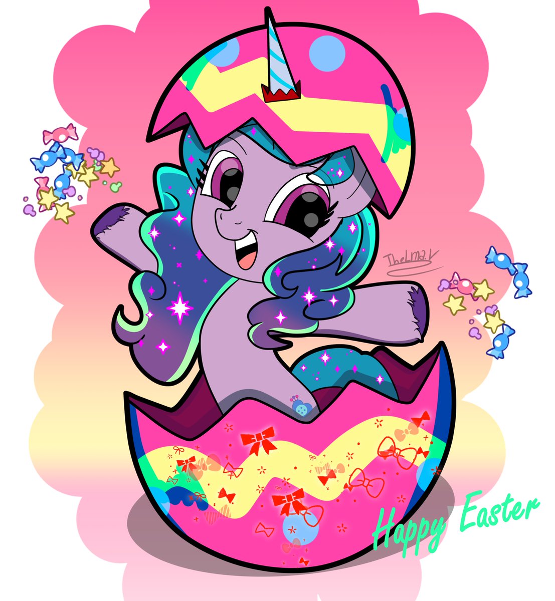 🐇🎀🥚 Izzy wishes you a Happy Easter 🥚🍫🐇 #MLPANewGen #MLP #MLPG5 #MLPFanart #FanArt #IzzyMoonbow #HappyEaster #FelicesPascuas