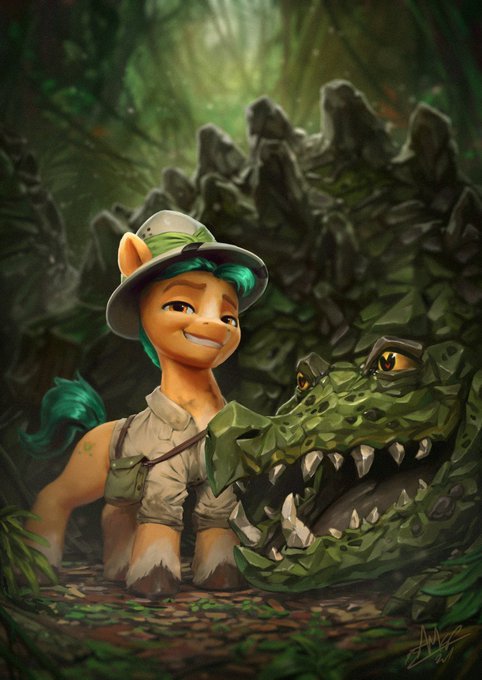 "Hitch and his Cragadilady" With his perfect mane... and his shredded abs... Gets all the critters large and small, in any costume. #MLPG5 #Fanart #MLPANewGen