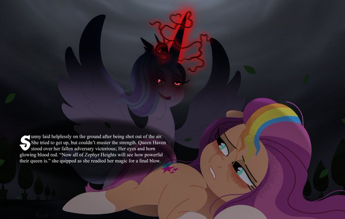 An alicornized, and corrupted Queen Haven prepares to kill Sunny. #MLPFiM #mlpart #mlpgen5 #mlpfanart #Sunnystarscout #Queenhaven.