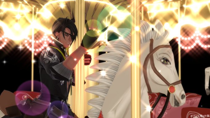 魔人なら、「何かが道をやってくる」に出てくる回転木馬に乗っても大丈夫だな。 (レイ・ブラッドベリ作のダークファンタジー小説。映画にもなっている。) モデル:© 2016 COVER Corp.様・MIZU様 指ポーズ:m6様 エフェクト:針金P様・そぼろ様・ミーフォ茜様 #MMDホロスターズ #オウ画