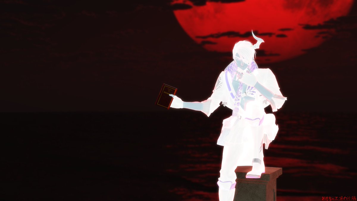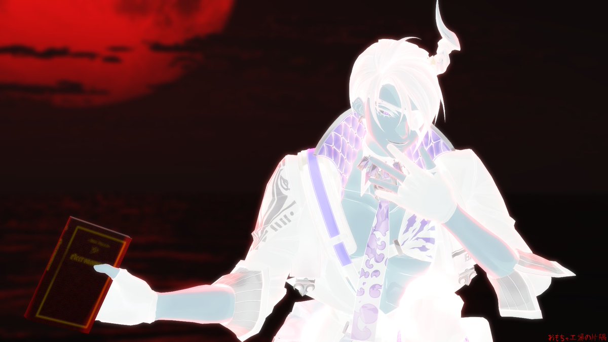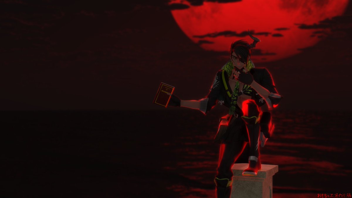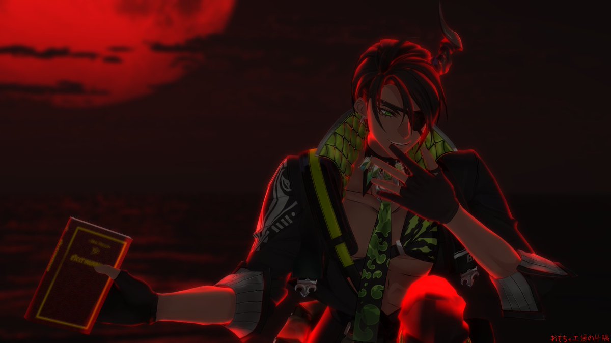「ネクロノミコン」(クトゥルフ神話に登場する架空の魔道書)ゲットして、オマエさん達に見せびらかしに来た魔人の図。 モデル:© 2016 COVER Corp.様・円グラフ様・ずま様 スカイドーム:額田倫太郎様 指ポーズ:m6様 エフェクト:針金P様・そぼろ様・ミーフォ茜様 #MMDホロスターズ #オウ画