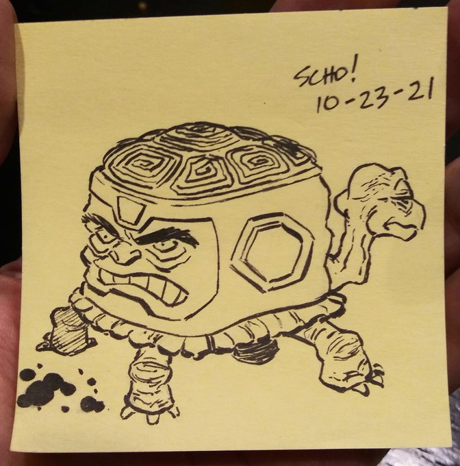 M.O.D.O.K.TOBER Day 23 - S.L.O.W.D.O.K!! @Tigrannosaurus1 suggested this pun but I came up with a different take - hope you like it! #MODOKtober #inktober2021 #drawtober2021 #drawingchallenge #MODOK #Marvel #marvelcomics #tortoise