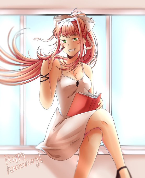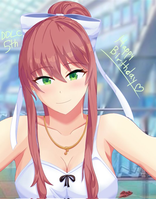 Happy Birthday to Monika💚(@lilmonix3), and Happy 5th anniversary of DDLC!! #DDLC #Monika #ドキドキ文芸部 #DokiDokiLiteratureClub #DDLCfanart