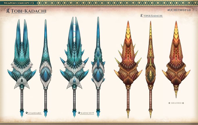 Weapon Concept #3: Tobi-Kadachi Greatswords Fashioned after electrical plugs and tasers. While Viper's is some kind of evil syringe. Accepting name suggestions for these! #MonsterHunter #モンハン
