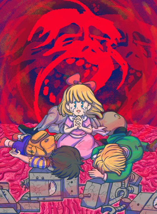 MOTHER2リー🎄 28周年おめでとう~🎉 ドット絵で地底大陸風?にMOTHER2全キャラ(多分)描いたので、拡大して見てくださ😘 #MOTHER2_28th #MOTHER2_28周年 #EarthBound #pixelart #ドット絵