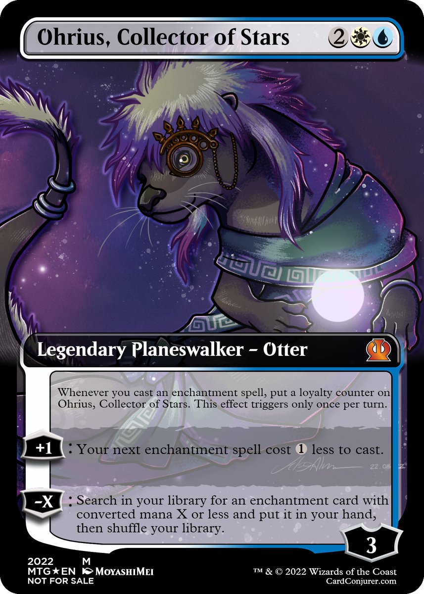 Presenting to you: Ohrius, the otter Planeswalker! I finally finished this project after roughly 2 months, thank you so much to everyone who contributed to the character sheet! I hope you like the design and the card mechanics 😊🦦🤍💙 #MTG #MTGA #fanart #planeswalker twitter.com/letsongakemi/s…