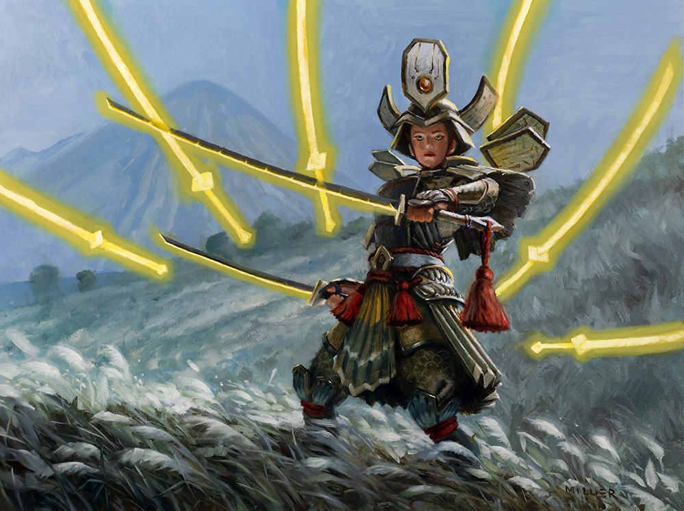 The new painting is - A moon Samurai! :) I guess I was inspired by all the awesome art for #MTGNEO Neon Dynasty! #art #digitalpainting #samurai #illustration