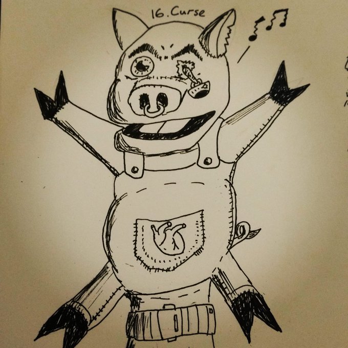 #Magictober 16: Curse. "Hi, I'm Ham Hock! Let's sing a song! # This is the song that never ends...#" The Fool fought to rip the puppet from his hand. His mind screamed but only the damned song was to be heard, forever looping. #Inktober #MTGMidnight #MTGInnistrad #DrawAndCreate