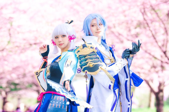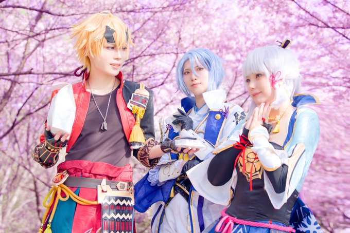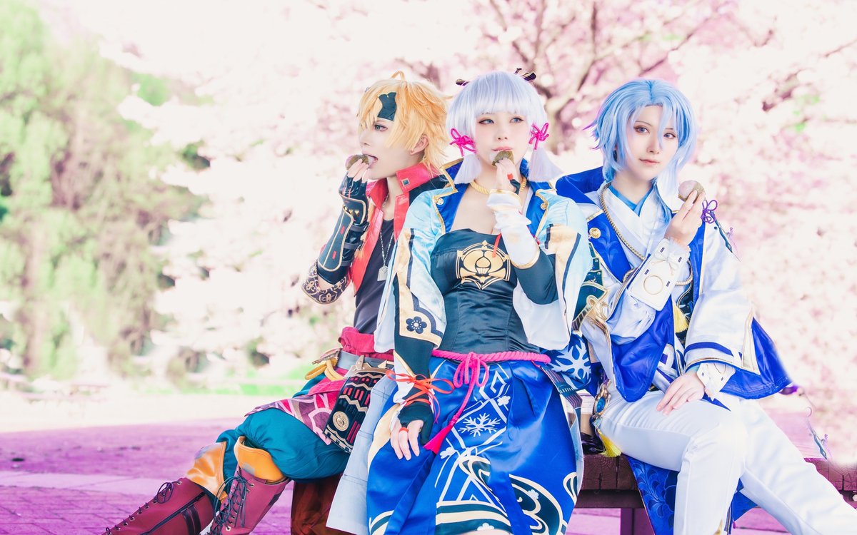 原神/cos 神里家のお花見 神里綾人:まいか @Maika_lily 神里綾華:さいげつ トーマ:青ぬこ@BluVell photo:まと。さん@mtk_0713_ #MT_photo7