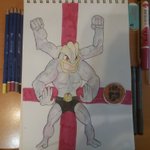 #Inktober #inktober2020day3 #bulky Pues he decidido traer un #fanart del gran #pokemon #machamp . Como los anteriores, está coloreado con lápices acuareables de #staedler, delineador de la misma marca y las líneas magenta del fondo con un #ecolinebrushpen ¿Qué os parece?💕