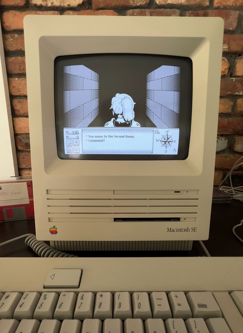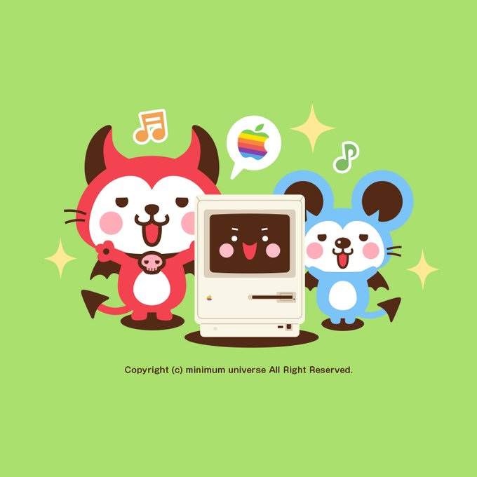 今日は「初代Macintosh発売日」に便乗するデビ♪ 本体 キーボード マウス どれも素晴らしいデザインで見惚れちゃうデビ(`・ω・´)🍎 #今日は何の日 #マッキントッシュ #1984年1月24日発売 #ネコ #ネズミ #悪魔 #イラスト #キャラクター #Macintosh #cat #mouse #illustration #character #kawaii