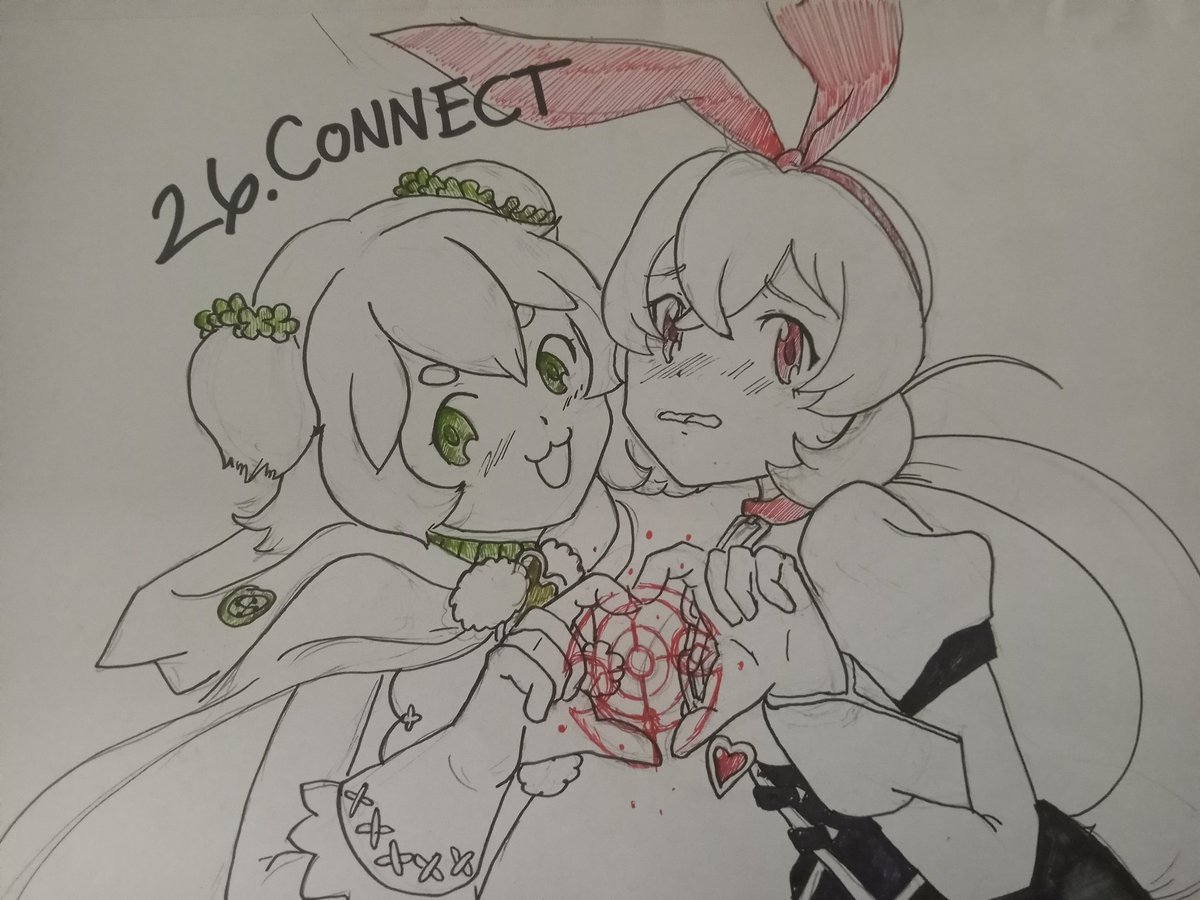 #inktober day 26. Connect Gotta simp for @sondenise1 and her girl Yukika. Where the magirecos at #magireco #mitoaino #yukikananase #magiarecord #MadokaMagica