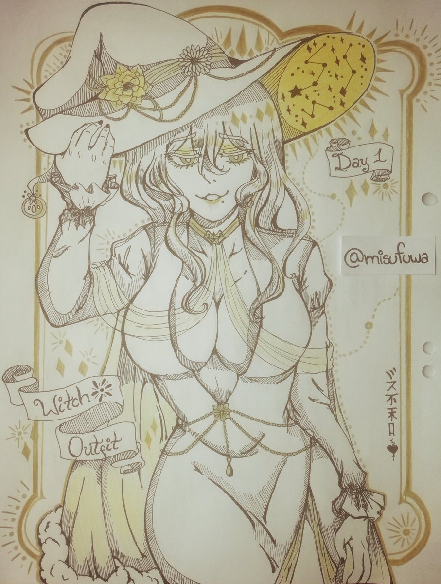 Version of inktober in my style. Day 1, Witch outfit 〜 🌙✨ . . . . . #myart #art #drawing #traditional #traditionalart #inktober2022 #Magictober2022