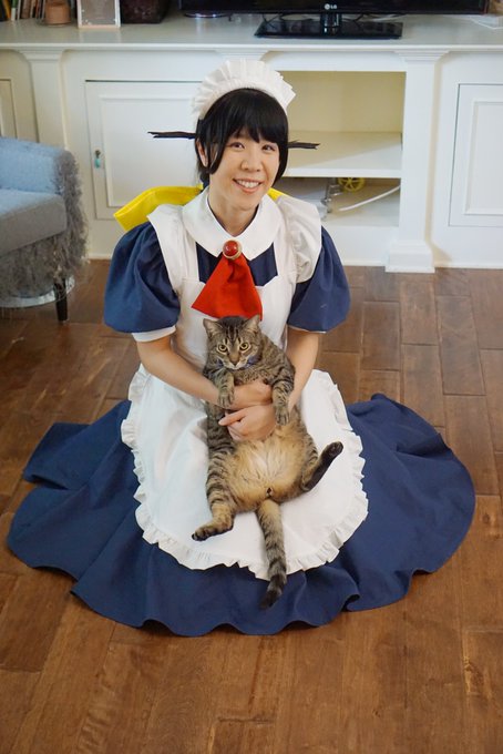 Happy #Caturday with my cat Cid! Here's a #cosplay I threw together using materials I already have (sans wig lol)! Since I finished #Mahoromatic I wanted really wanted to cosplay Mahoro! Took about a week's worth of time to finish! 📸@the_weebologist ✨