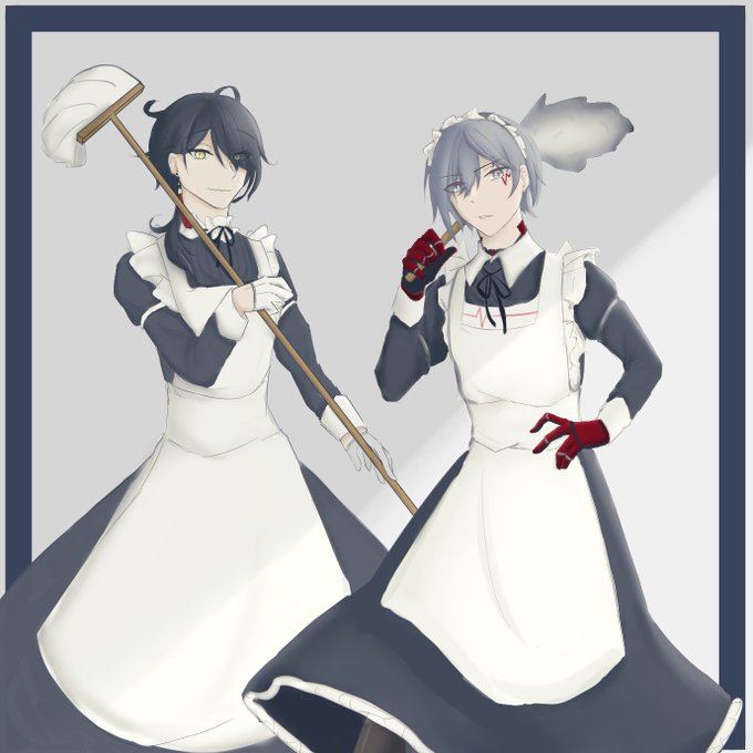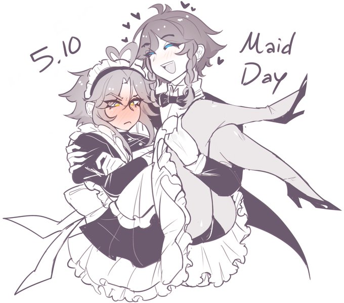 I had to... Might be late? (timezones???) but yeah.... I had to doodle something for #MaidDay2022 Yves's BF might have left a mess... tsk tsk :> #FFXIVART
