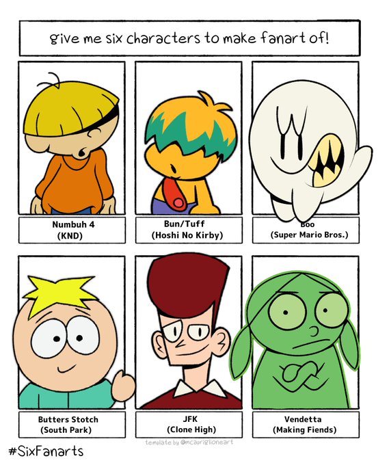 My six characters (#SixFanarts #MakingFiends #KND #Kirby #CloneHigh #art #fanart #Mario #SouthPark)