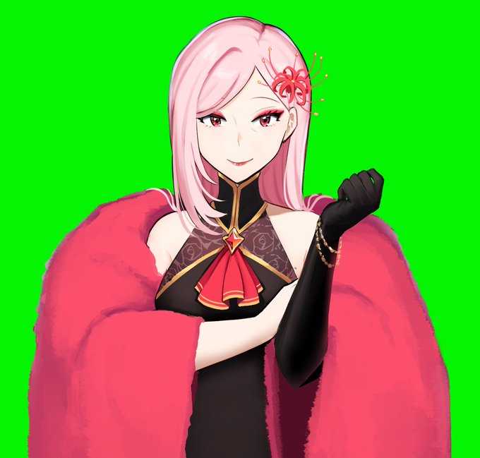 Here's a greenscreen version and the fullbody! And a Google drive link because transparent pngs don't want to stay transparent here LOL bit.ly/3MFD1Gq #mamamori #callillust
