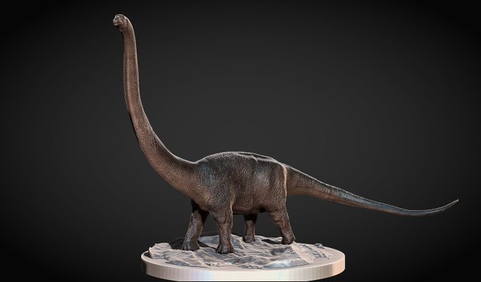 Blenderで #マメンチサウルス 作りました! 名前は中国の地名が由来。 全長約25mでその半分は首。 長い首は高い位置の葉を食べるというより「移動しないで広い範囲の植物を食べる」という使い方をしていたらしい。 #b3d #blenderart #Mamenchisaurus #恐竜 #dinosaur #paleoart #バーチャル恐竜館