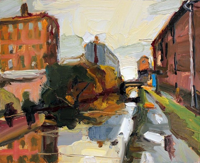 “Ashton Canal, Manchester”, 15X20cm, oil on board. #paintingoftheday #artgallery #onlineart #Manchester