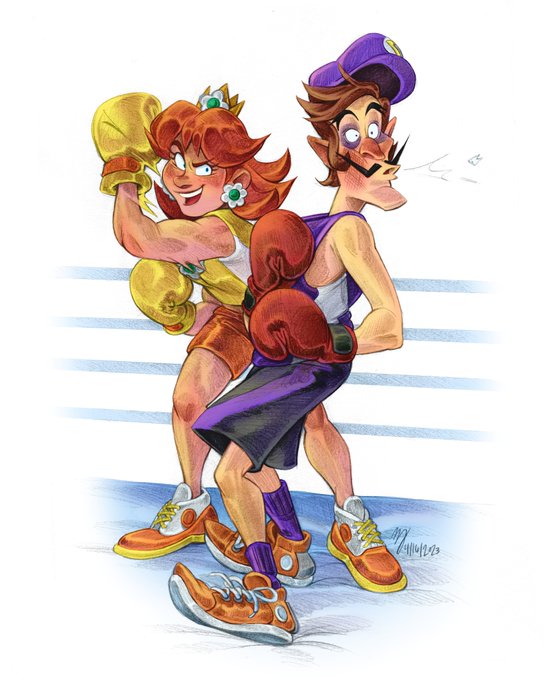 I feel like an old woman because I haven't used twitter basically ever and I don't know what I'm doing BUT, here is Daisy kicking Waluigi's ass, inspired by watching creator clash and having the #MarioMovie at the forefront of my brain. . . . #PrincessDaisy #Waluigi #mariofanart
