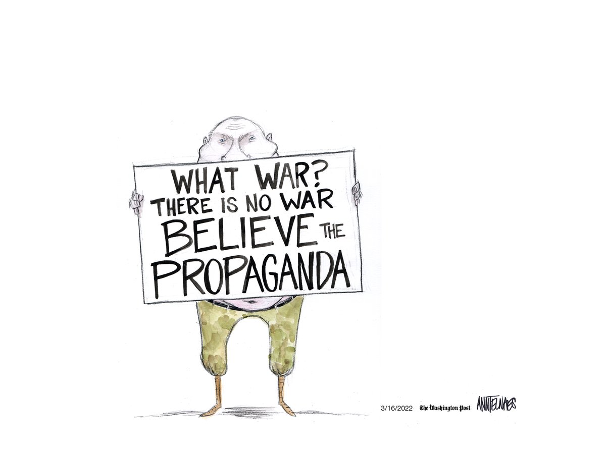 Putin is tightly controlling the news Russians receive about Ukraine, but there have been courageous acts by individuals challenging him #MarinaOvsyannikova washingtonpost.com/opinions/2022/…