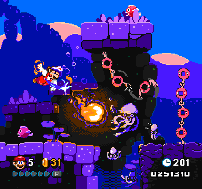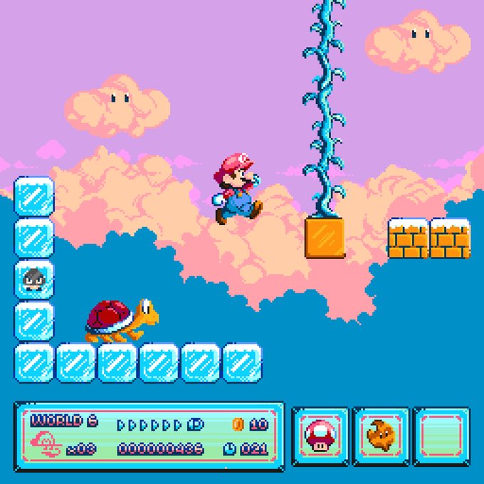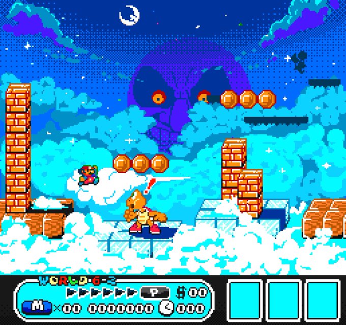 Smb3 redraw. World 6-2. I kept forgetting to post this to my timeline but this was finished months ago. #Mario3Redrawn #RetroRedrawn #pixelart #ドット絵