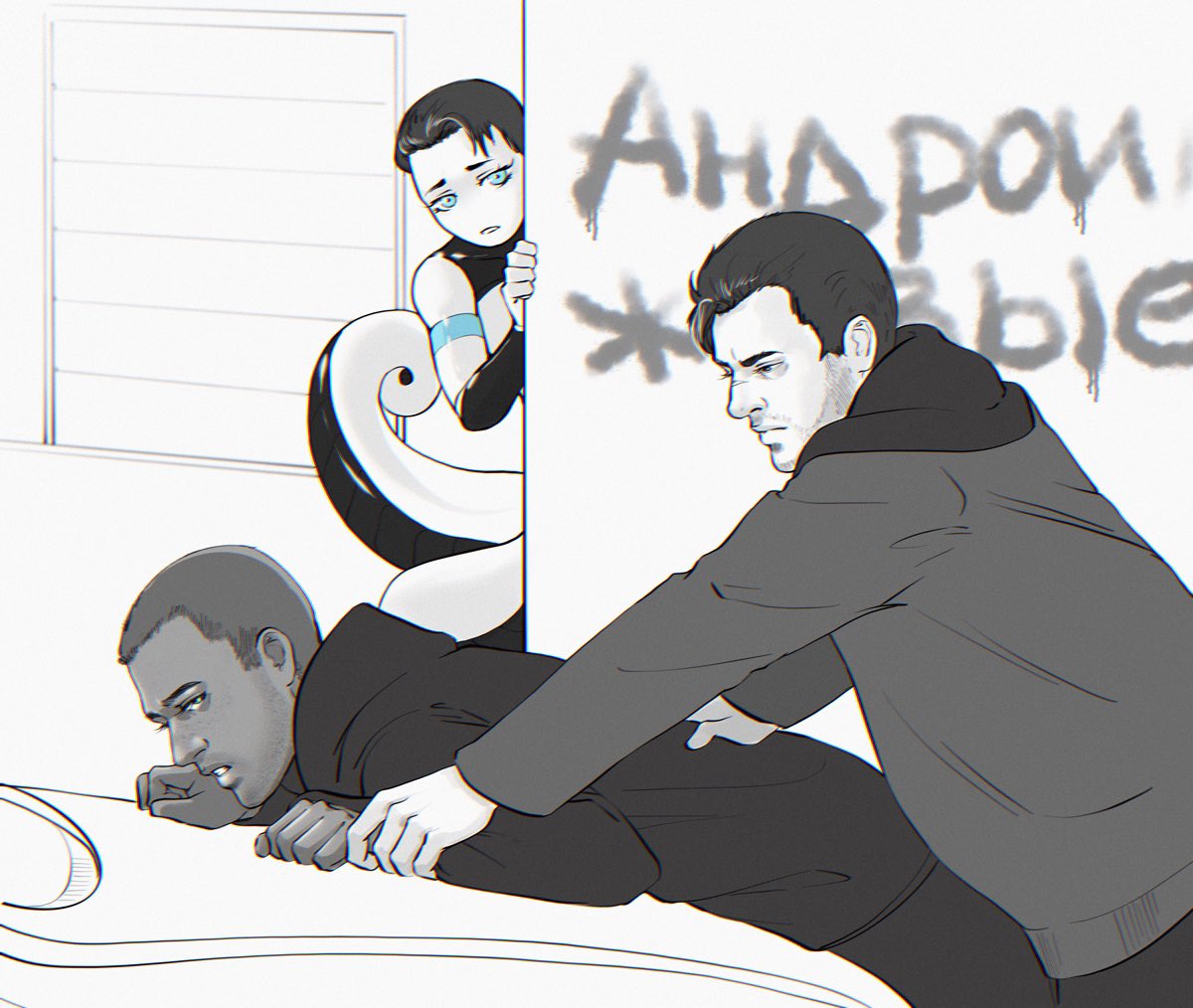 #inktober2021 #detrober День 6 #rk1000 #DetroitBecomeHuman #Markus #Connor Чибики тоже требовали любви