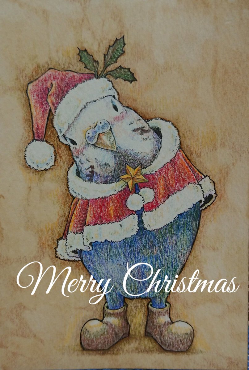 明日は穏やかで優しいクリスマスをお過ごしください😊🎄🌟 (以前描いたこのイラスト…インコとハト説がありますが…すみません、インコです✨笑) #MerryChristmas2021 #marrychristmas #サンタクロース #インコ #イラスト #絵柄が好みって人にフォローされたい