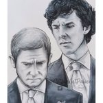 My Artwork of #Sherlock & John Copic Markers on bristol paper 🎨 It's called The Regret. I wanted to capture the moment, when John regrets his wedding plans and realizes that his heart belongs to someone else. Someone we all know very well. #BenedictCumberbatch #MartinFreeman