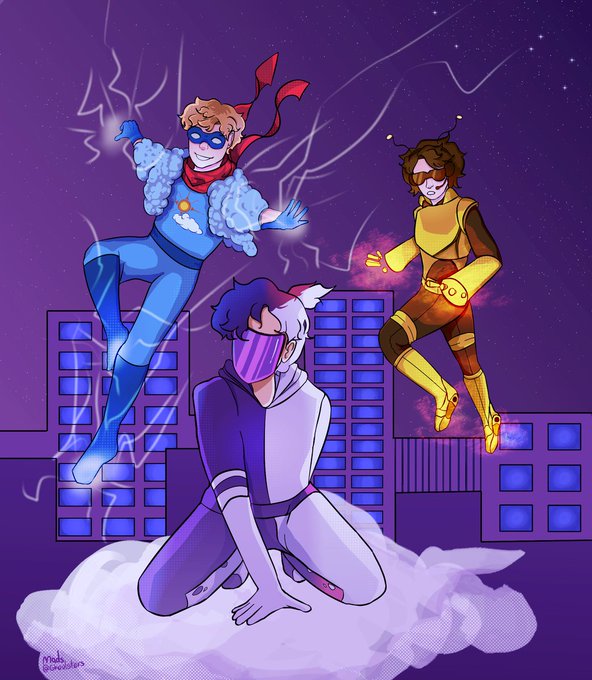 Really hope this is not late, but this is gotta be one of the most challenging DTIYS i've ever done. 🌩️🐝🌌 @xMaruu11 #MaruuDTIYS #ranboofanart #tubbofanart #tommyinnitfanart #benchtriofanart