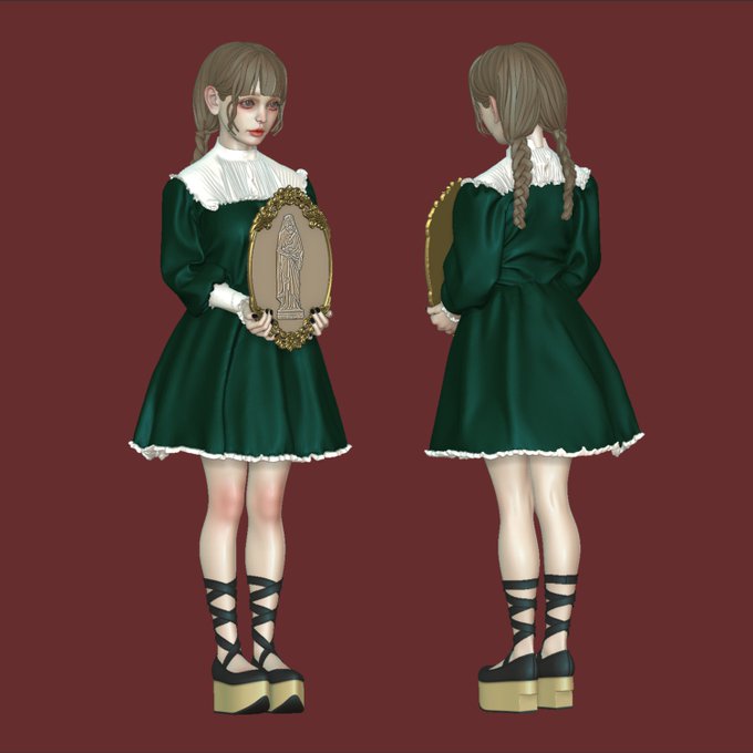 みずしーの静止画を作るシーズン2その8✨ 完成です😆🙏 今回はムンクの叫びみたいな感じに仕上げてみました☺️✨ #3DCG #modeling #Lightwave3D #MarvelousDesigner #水科葵 #みずしー #みずしにゃ #GEMSCOMPANY #ぶくぶくの民絵