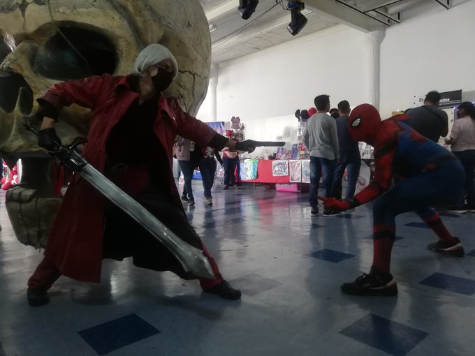 Nos echamos un #marvelvscapcom3 ? Gracias al buen #spiderman por la foto. Visita mis redes sociales linktr.ee/vert_cosplay #コスプレ #cosplayer #cosplaymexico #devilmaycrycosplay #dantesparda #devilmaycry #ExpoTNT #TNT #marvelvscapcom