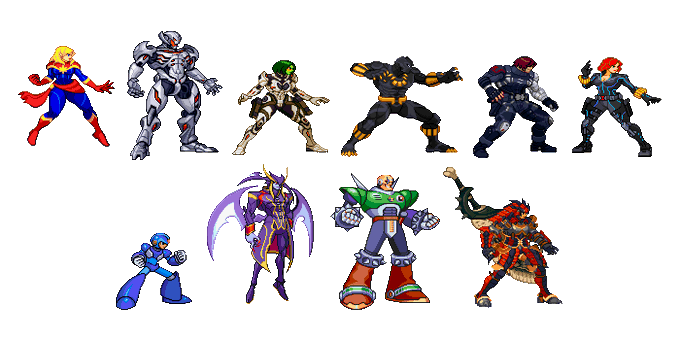 The MvCi newcomers now all together in sprite form! (w/ some tweaks here and there) #MarvelvsCapcom #PixelArt #ドット絵