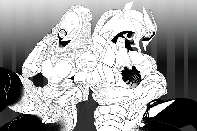 Inks ONLY commission I made for @Wanderer_D of Tali'Zorah and Legion from #MassEffect. #MassEffectfanart Ty again! Comm pr1ces/info on my pinned tweet!