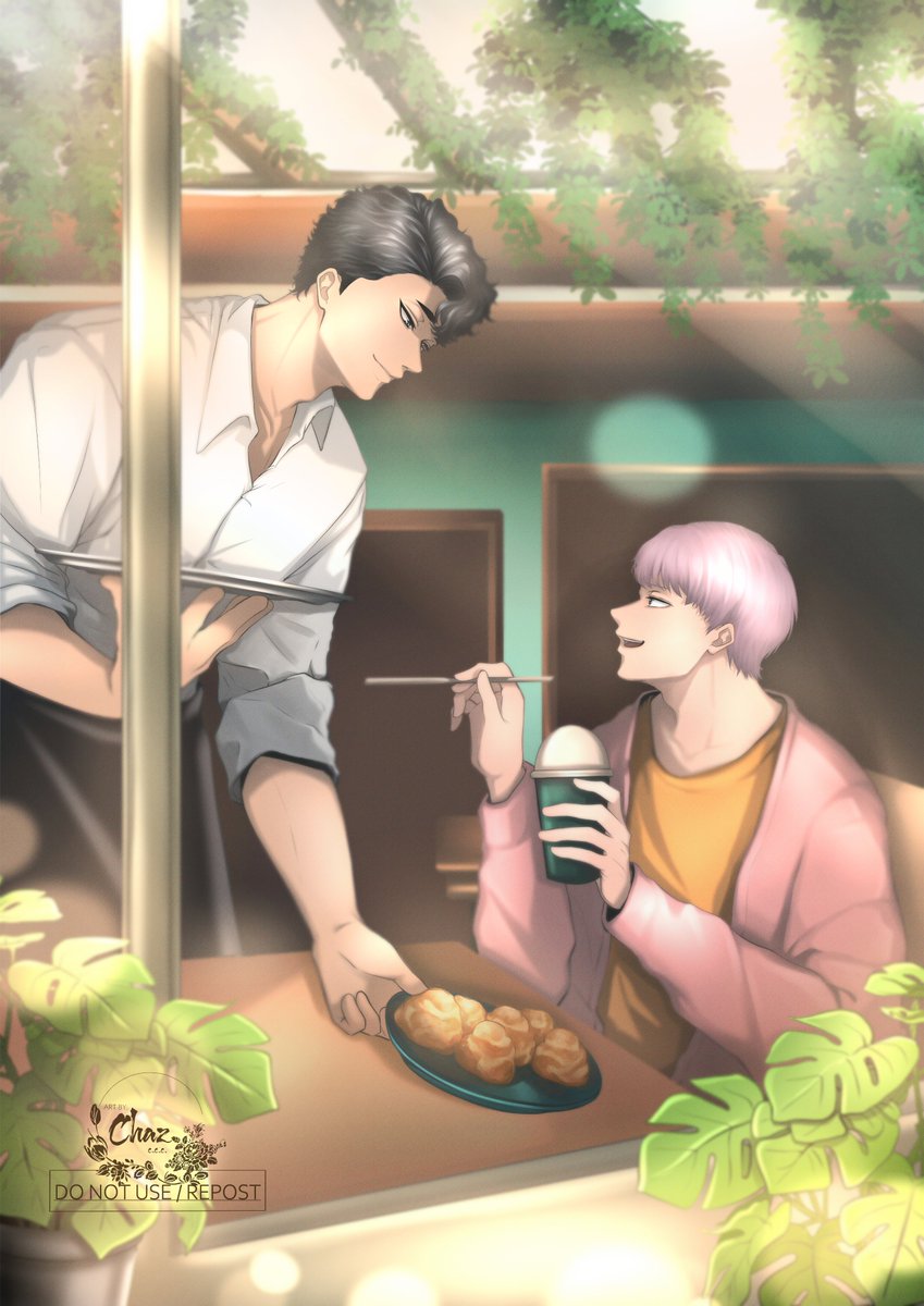 "A café in the heart of Sendai, a new pastry chef, an old friend, and a love story." A piece I made for @matsuhanabb for @naffnuffnice 's wonderful fic "never mind yesterday". 🥰💕 #Matsuhana #Haikyuu #MatsukawaIssei #HanamakiTakahiro