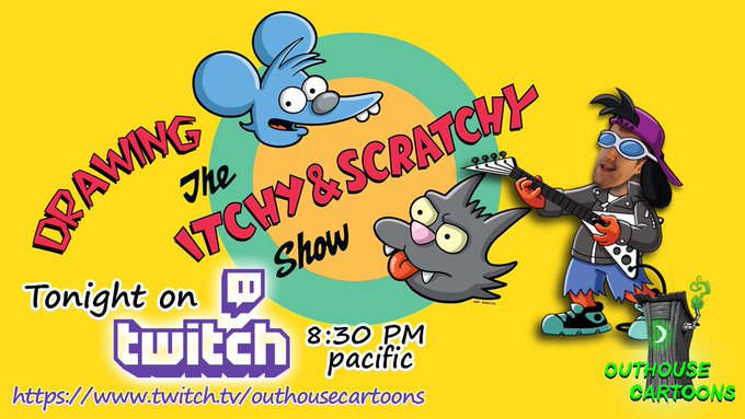 Tonight on Twitch I’ll be drawing Itchy & Scratchy! Follow and watch tonight at 8:30PST at twitch.tv/outhousecartoo… #ItchyAndScratchy #TheSimpsons #MattGroenning #animation #fanart #art #artist #stream #twitch