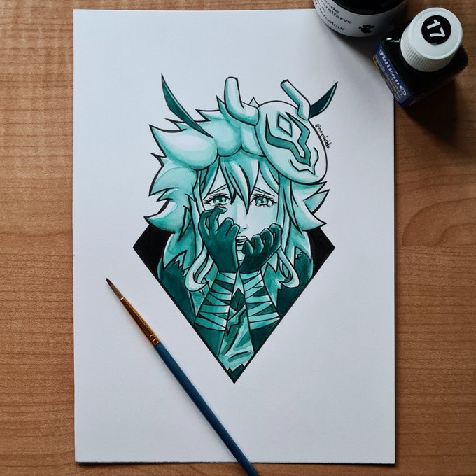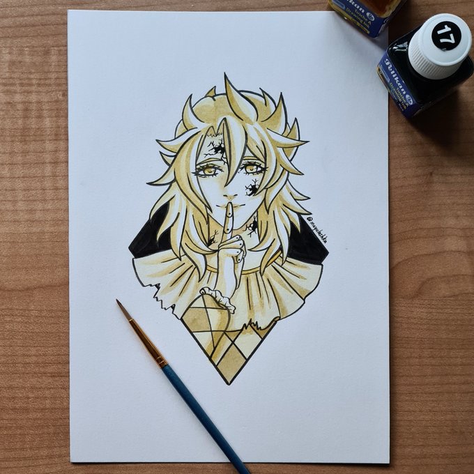 🔶️《18. Tartaglia》🔶️ Continuing with the lie he told his little brother, he has decided to disguise himself as a toymaker, or at least his idea of what a toymaker is 🎩🧸 #Mayulashka #GenshinImpact #原神 #Tartaglia #Childe #Drawtober #Tintubre #Tintubre2021 #Inktober