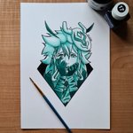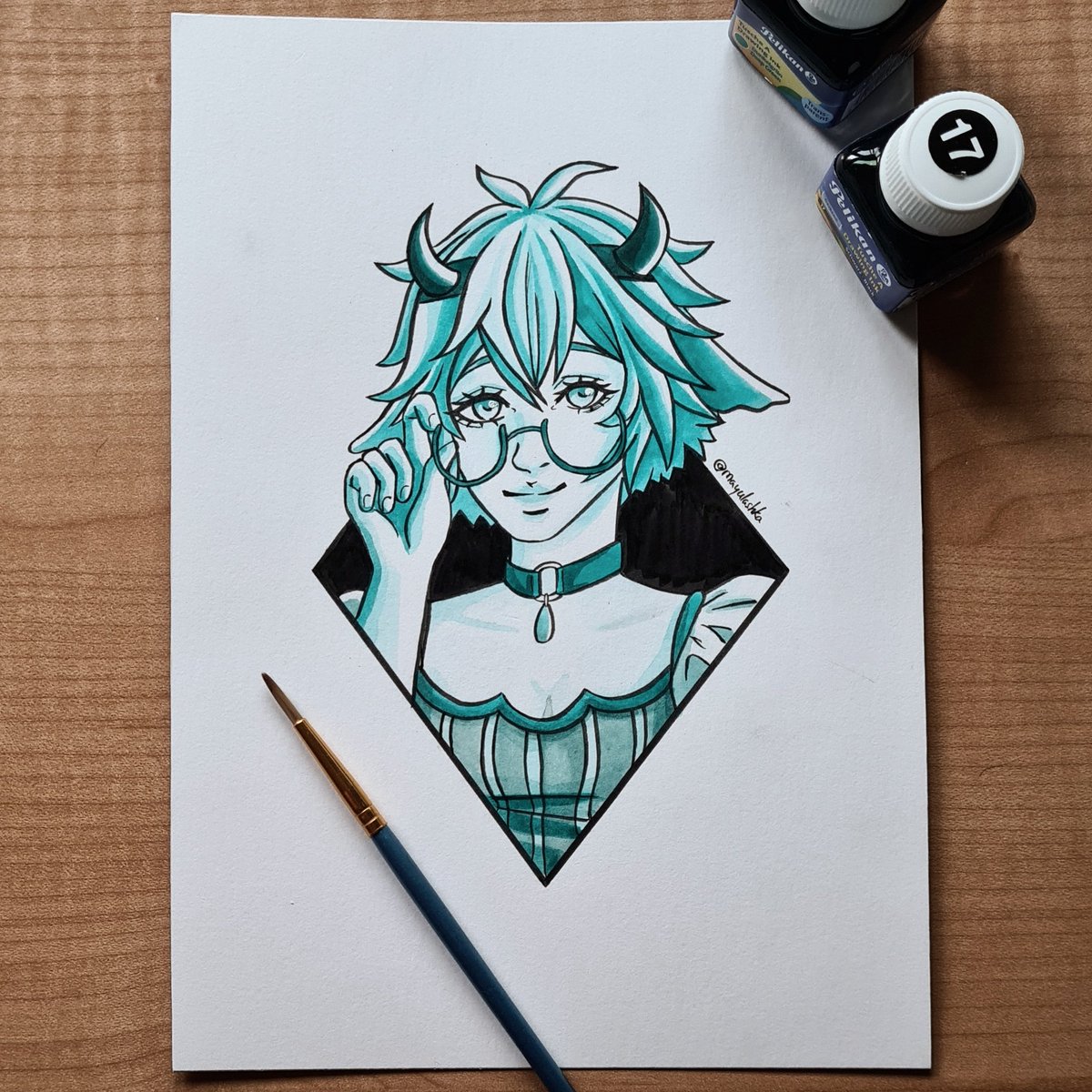 🔶️《16. Baizhu》🔶️ Although his job is to keep people healthy and alive, his costume for the party is the Reaper. Changsheng also had a hat as a disguise, but she has refused to wear it 🐍 #Mayulashka #GenshinImpact #原神 #Baizhu #Drawtober #Tintubre #Tintubre2021 #Inktober