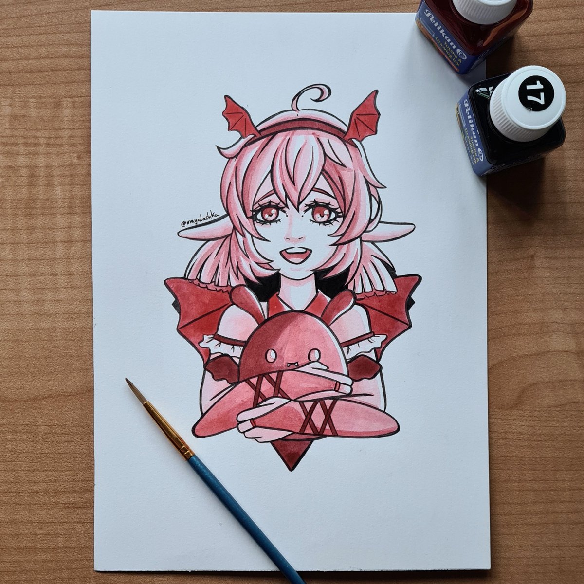 🔶️《12. Klee》🔶️ Matching her costume and stressing Jean even more, Klee has created a new kind of bunny-bat bomb that, of course, flies... 🐰💥 #Mayulashka #GenshinImpact #原神 #Klee #Drawtober #Drawtober2021 #Tintubre #Tintubre2021 #Inktober