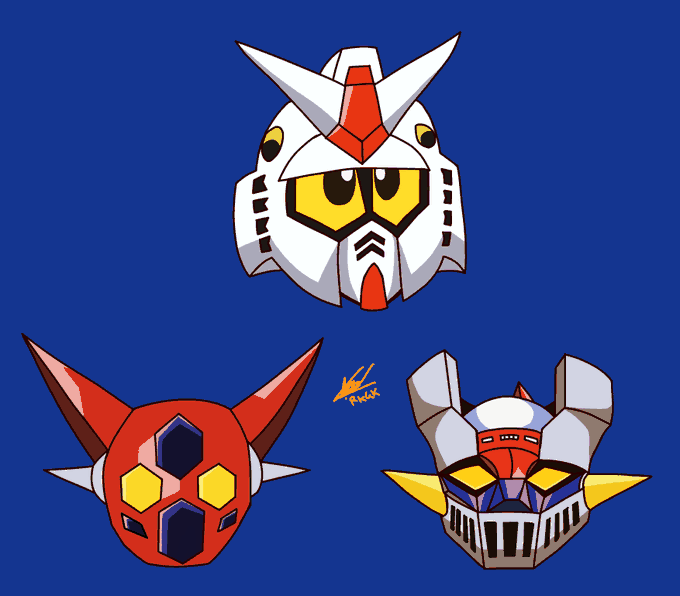 ここ数日、体調が悪い中、4枚の落書きを描きました。 I drew these 4 doodles while I was sick in these past days. #rkgk #落書き #MechaMAYhem #銀河烈風バクシンガー #超獣機神ダンクーガ #光速電神アルベガス #Voltron #トップをねらえ #Gunbuster #Mecha #メカ #ロボット #ロボ